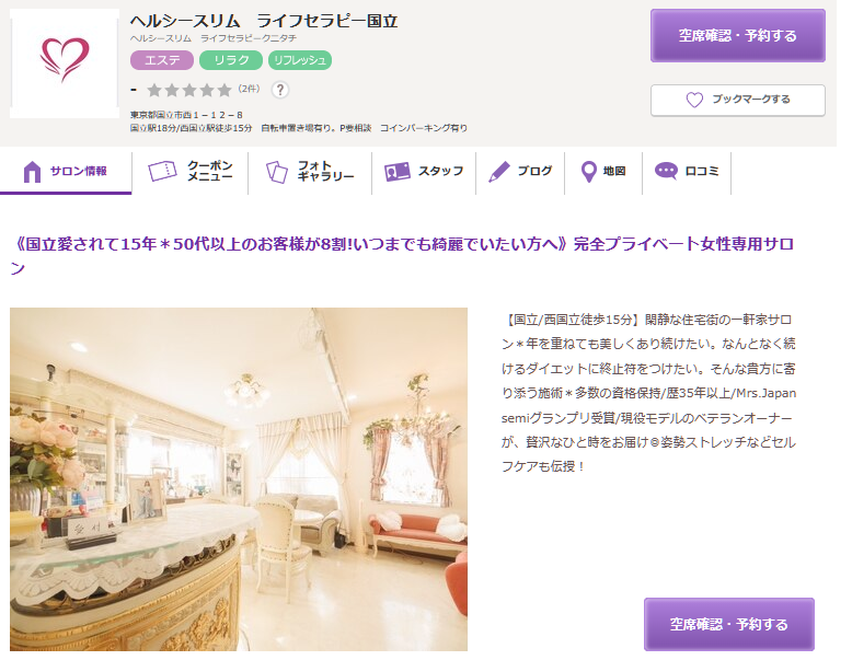 ヘルシースリムライフセラピー国立です♪ご利用いただきありがとうございます。